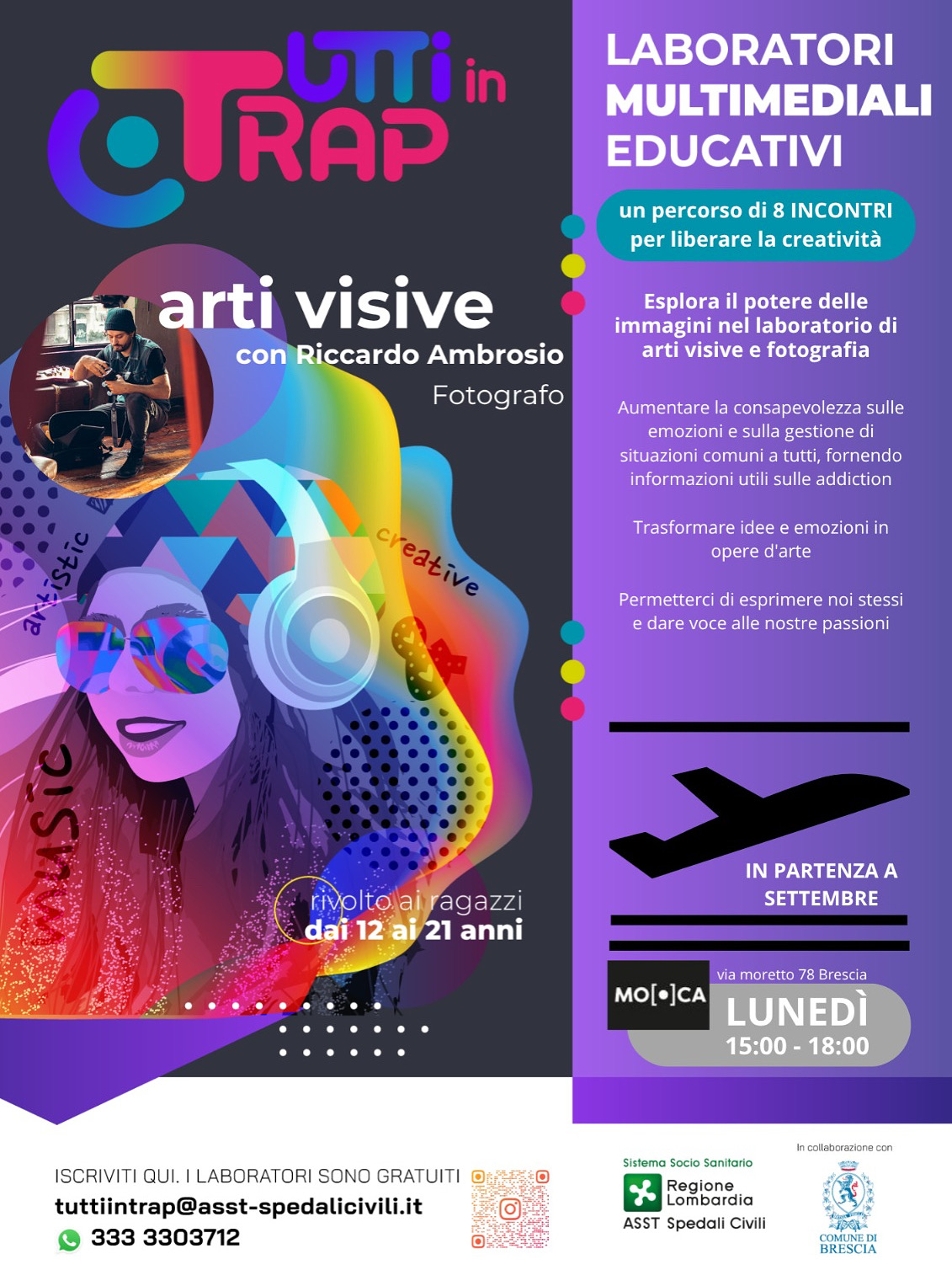 Partirà a settembre 2025 il prossimo laboratorio "Tutti in TRAP – Try Replacing Addiction with Prevention", promosso dall'ASST Spedali Civili di Brescia in collaborazione con il Comune di Brescia,condotto dagli operatori del progetto (terapisti della riabilitazione), in collaborazione con il fotografo Riccardo Ambrosio Photographer, artista bresciano con esperienza internazionale e grande capacità relazionale con i ragazzi.